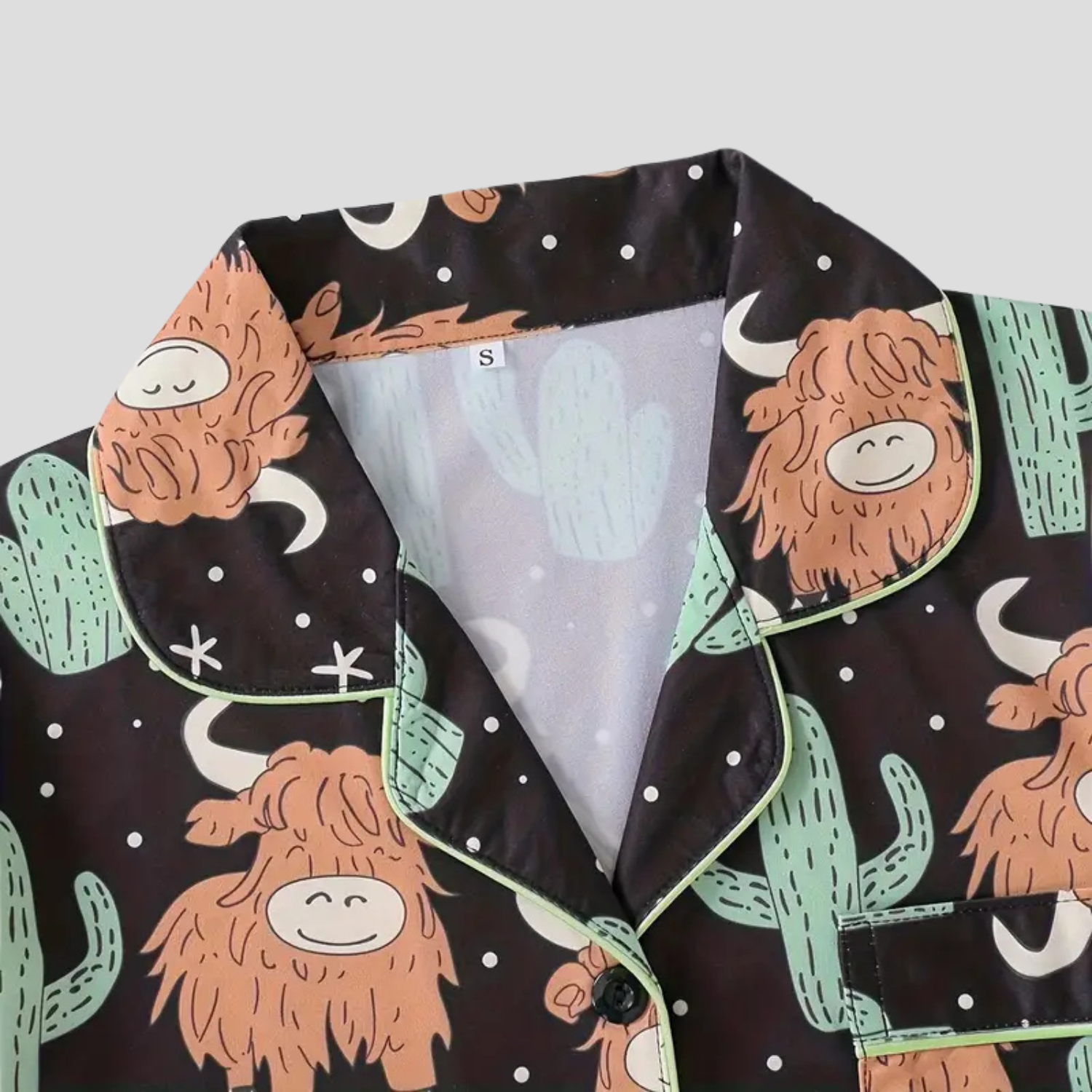 Drift off in cozy style with our Highland Cow & Cactus Women's Pajama Set—a soft, breathable cotton blend that’s as comfy as it is cute. Featuring a whimsical western print and relaxed fit, these novelty pajamas are perfect for lounging, gifting, or adding a little joy to your nightly routine. Designed for all-day comfort and built to last wash after wash.